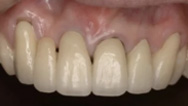 セラミックの本歯が入り、治療前は食べることが出来なかった固いものなど、好きなものを気にせずに何でも食べることが出来るようになりました。見た目も患者様の理想的な形で、本物の歯と歯肉のような艶や透明感があります。